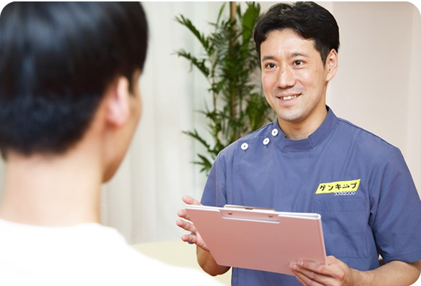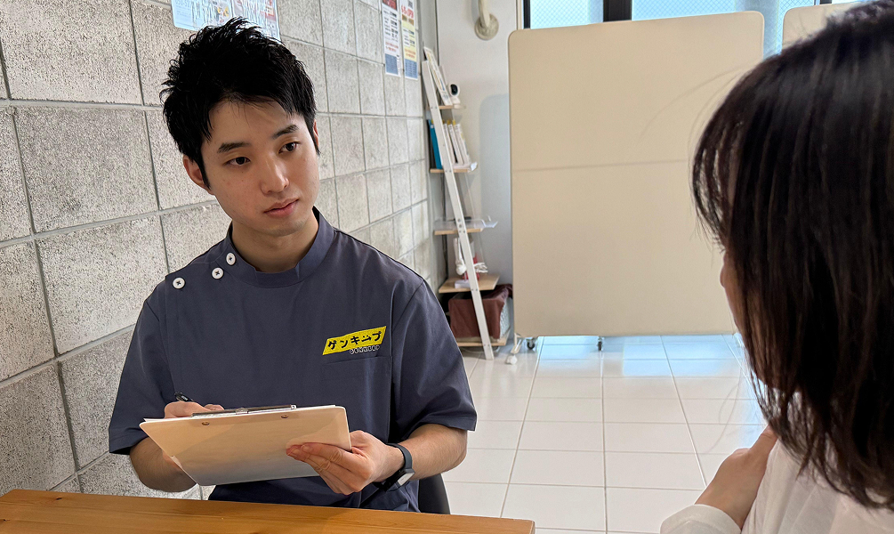 症状や困っている動きをヒアリングし、痛みの原因を徹底的にチェックします。