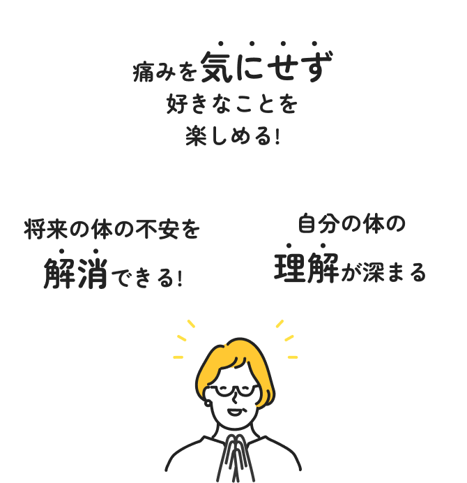 一方通行で説明するだけでなく、なぜ痛みが出るのかを一緒に学び、納得しながら改善に取り組める整体を目指しています。