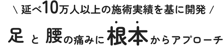 ゲンキープ整体院では、延べ10万人以上の施術実績を基に独自開発したゲンキープメソッドで、足・腰の痛みに根本からアプローチする整体施術を行っています。